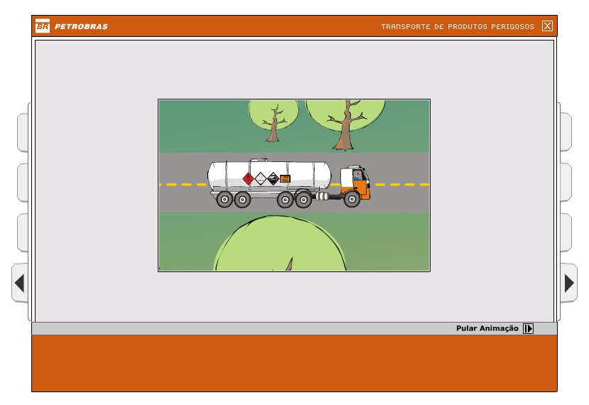 O Transporte de Produtos Perigosos foi pensado para atender à refinaria da Fafem, localizada em Camaçari, Salvador. A plataforma simulava todo o processo de transporte de produtos perigosos, incluindo as etapas de entrada e saída das instalações da Petrobras. Cada módulo trazia uma série de procedimentos que os profissionais deviam seguir para transportar esses produtos com segurança. Um dos pontos altos do projeto foi a criação de uma interface visual que, através de ilustrações e montagens fotográficas, representava o ambiente da refinaria, orientando os profissionais sobre as práticas e protocolos exigidos.